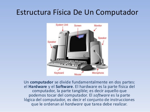 Partes físicas de la computadora hardware. Como ya muchos saben las computadoras se dividen en software y hardware. Partes fisicas de un computador. Pero hay otras partes que estn dentro del case o gabinete vase la imagen mal llamado cpu que es la parte donde se. El software y el hardware.